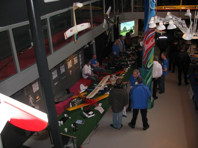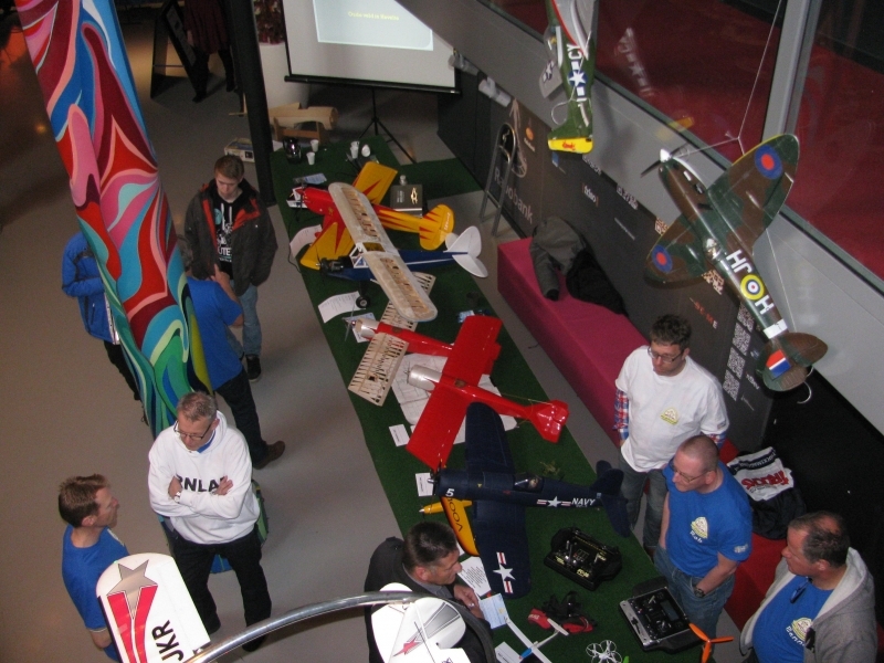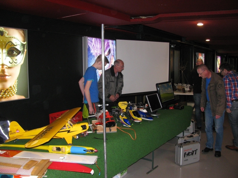 De organisatie had al 9 meter aan tafels voor ons klaar staan zodat wij alleen maar voor de aankleding hoefden te zorgen. Johan had weer voor een mooi gemaaide landingsbaan gezorgd in de vorm van een groen tapijt. Verder was er door de leden weer voor een grote verscheidenheid aan modellen aangeleverd waardoor we weer van alles konden laten zien aan de grote hoeveelheid bezoekers en geïnteresseerden.