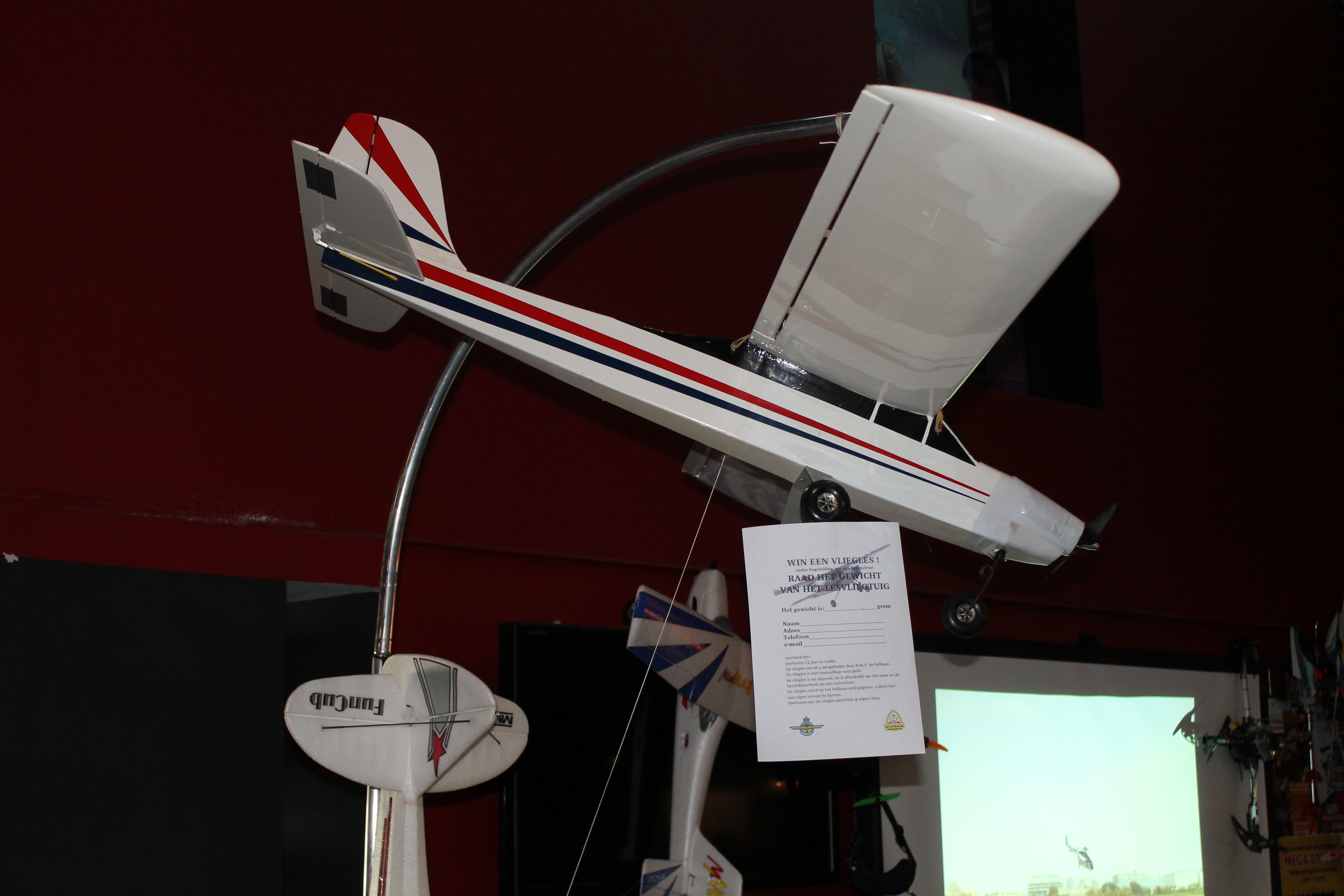 Nieuw dit jaar was een wedstrijd waarbij de bezoekers het vlieg gewicht moesten raden van ons trainings- toestel. Deze hing hoog in de lucht boven onze stand en was dus niet te wegen door de deelnemers. De prijs was een gratis verzorgde vlieg traingings vlucht met dit toestel onder begeleiding van onze instructeur.